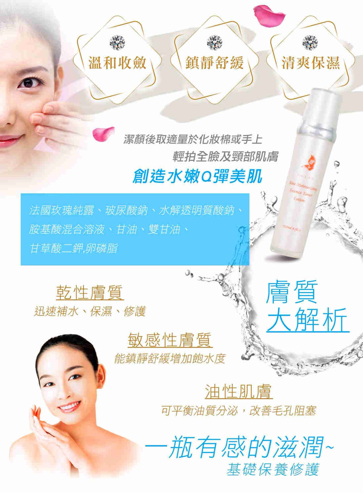 有大家最愛的法國玫瑰純露,還有超保濕的玻尿酸鈉