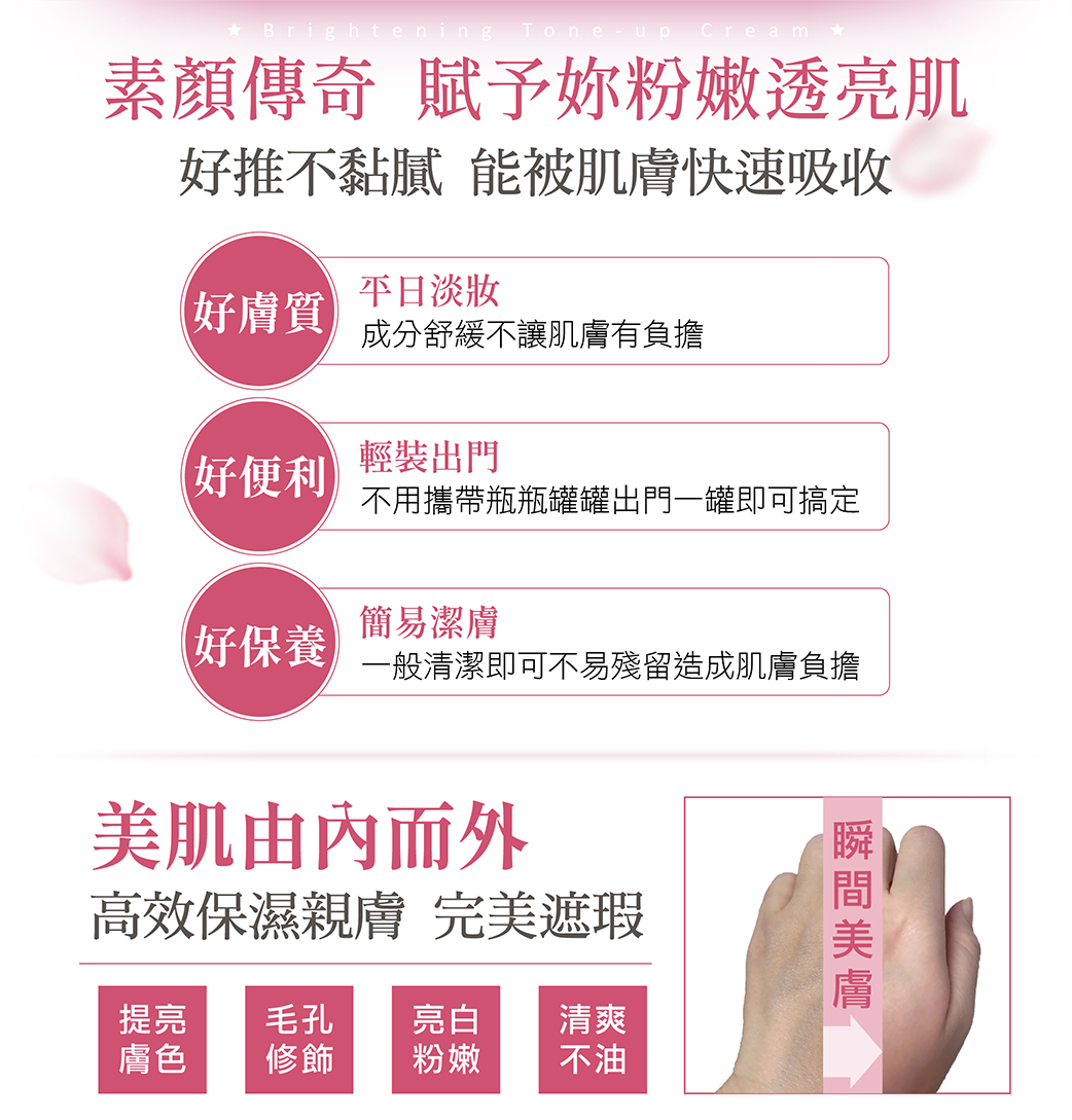✔粉嫩透亮、修飾瑕疵、修護、保濕、均勻膚色